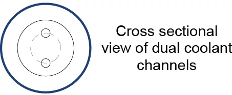 • Dual coolant channels through shank transition