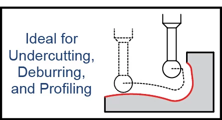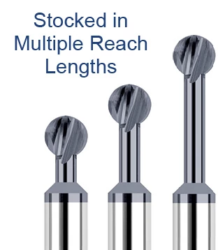 This fully stocked, 300° reduced shank offering of Undercutting End Mills is designed for undercutting, deburring, and multi-axis machining. Its reduced straight shank allows for chucking at any depth, while its solid carbide construction maximizes rigidity.