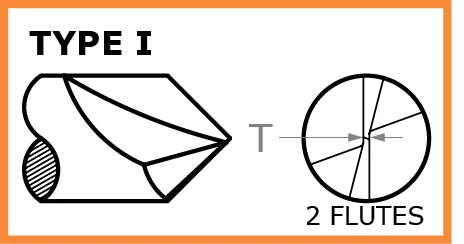 • Type I pointed style ground to a point, yielding web thickness at tip (T)