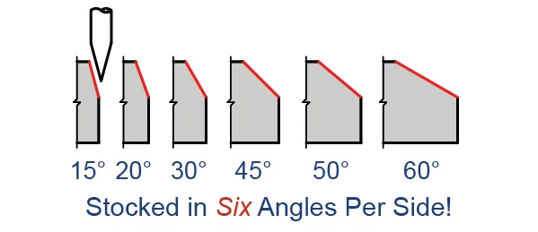 This Harvey Tool offering of Chamfer Cutters - Pointed & Flat End - Helical Flutes are stocked in styles with between 2 and 5 flutes and 6 angles per side, ranging from 15° to 60°, allowing for superior performance in both pointed and flat end styles.