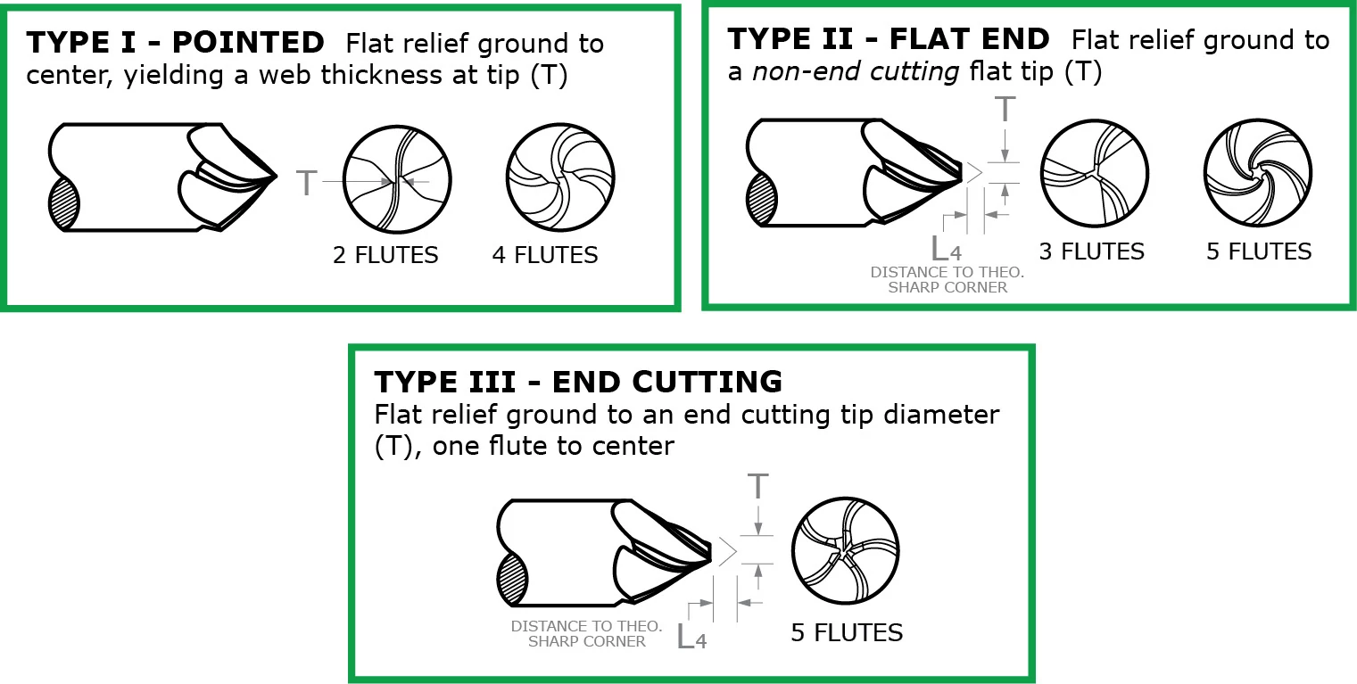 • Offered in Type I pointed, Type II flat end (non-cutting) styles and Type III end cutting.