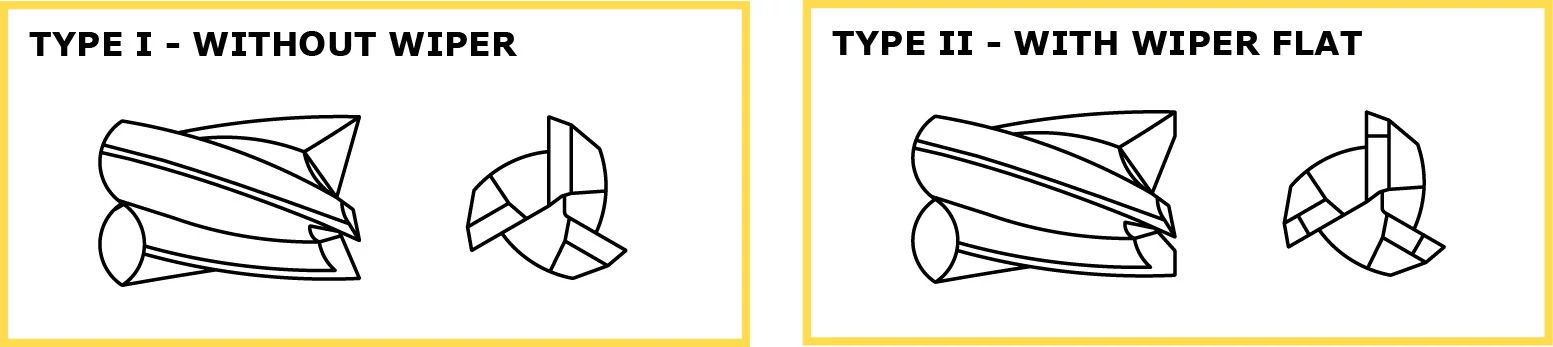 • 3 flute, higher helix (approx. 40°) design strengthens rigidity and increases cutting action to improve wall finish